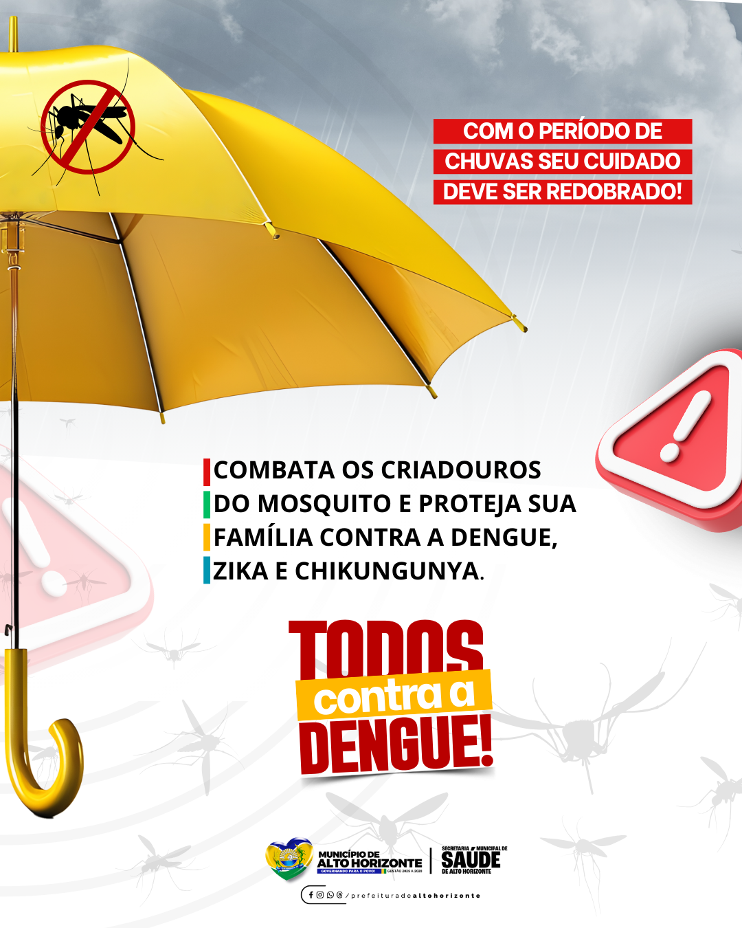 A Secretaria reforça que denúncias de possíveis focos do mosquito e solicitações de vistoria podem ser feitas junto às equipes de saúde, que seguem atuando intensamente em toda a cidade.